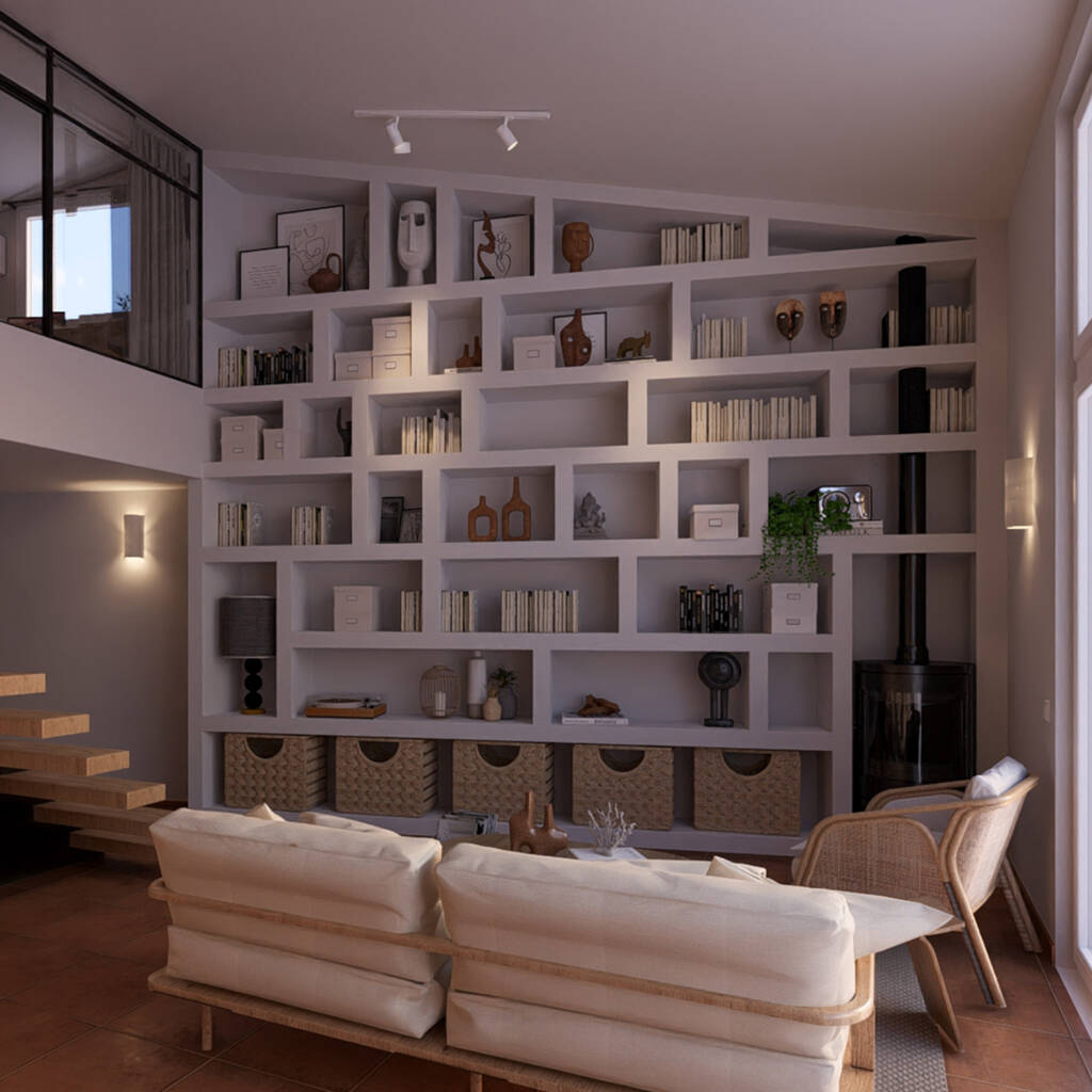 Con unas vistas directas al mar, esta vivienda en Cadaqués ya tenía un encanto natural que potenciamos con un interiorismo de carácter mediterráneo. El cliente pedia una librería donde exponer parte de su vida a través de libros y elementos decorativos que cuentan historias.