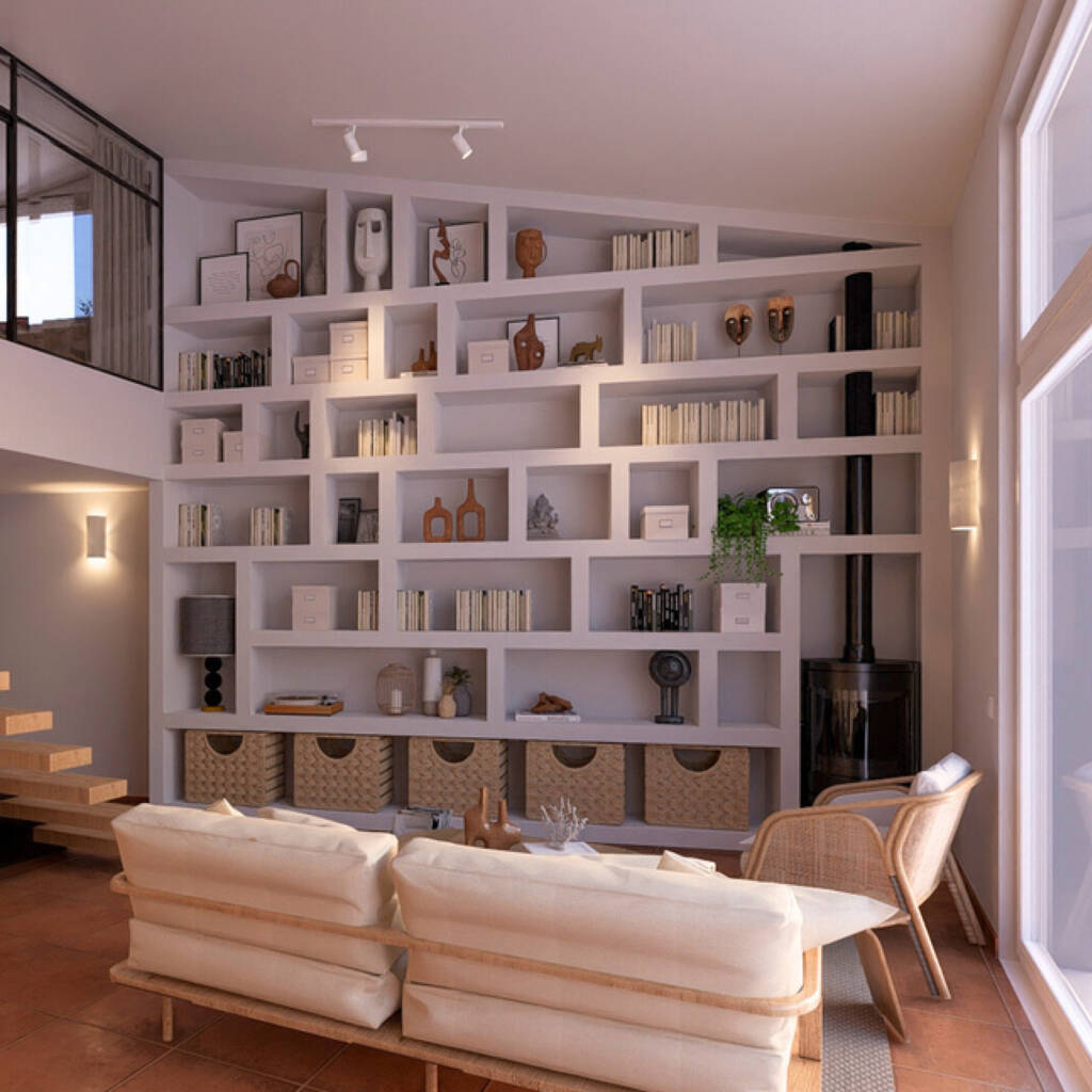 Con unas vistas directas al mar, esta vivienda en Cadaqués ya tenía un encanto natural que potenciamos con un interiorismo de carácter mediterráneo. El cliente pedia una librería donde exponer parte de su vida a través de libros y elementos decorativos que cuentan historias.