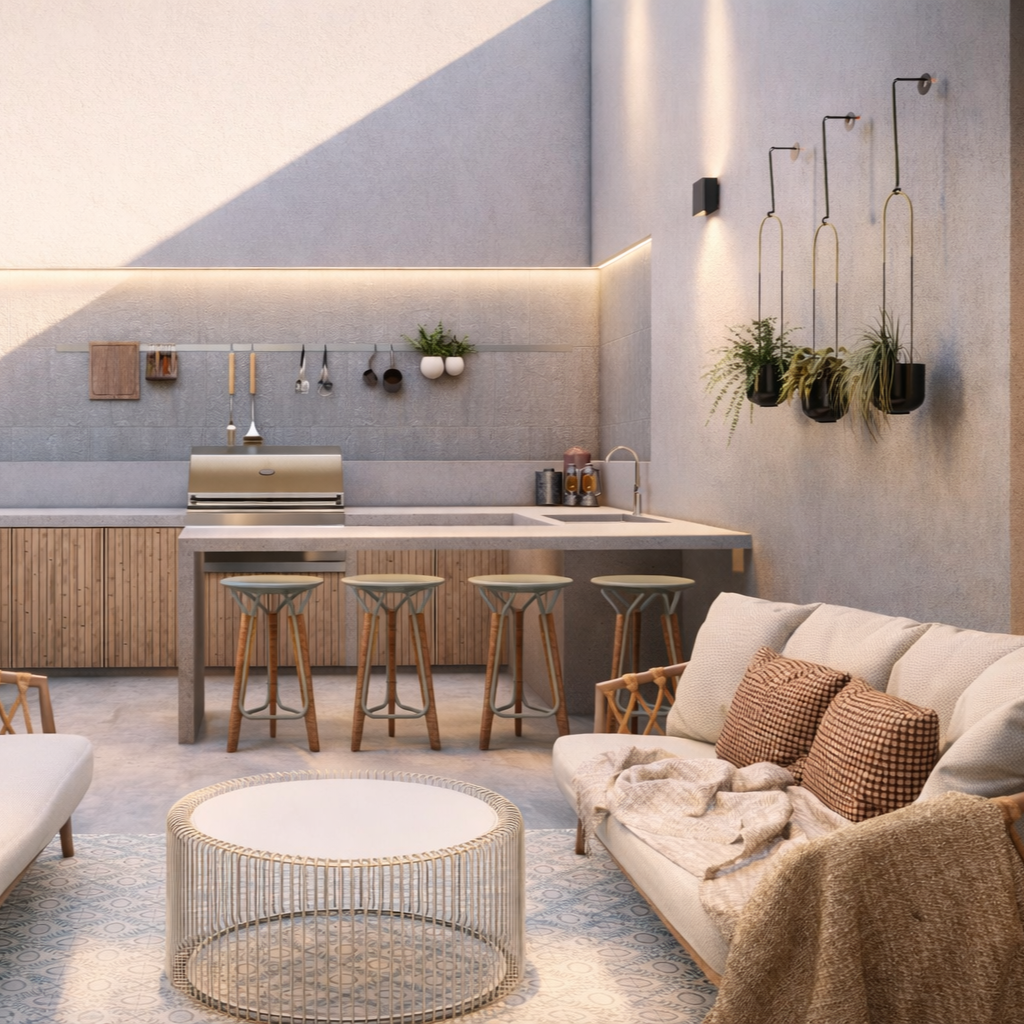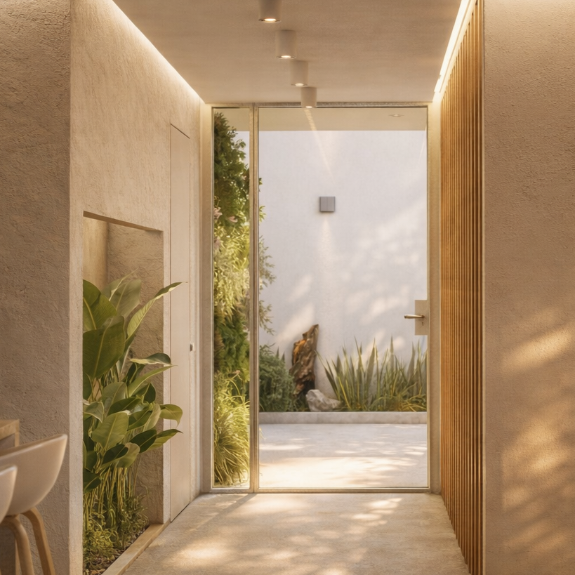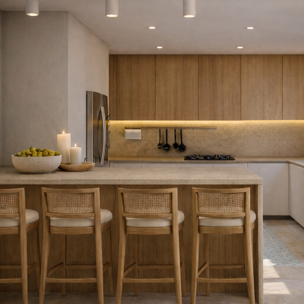 Este refugio fue concebido como un lugar para desconectar, respirar y reconectar con lo esencial. El proyecto consistió en una reforma integral que buscó abrir el espacio a la luz y calidez de la costa, utilizando materiales naturales y texturas suaves que acompañan sin invadir.